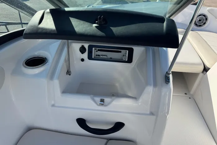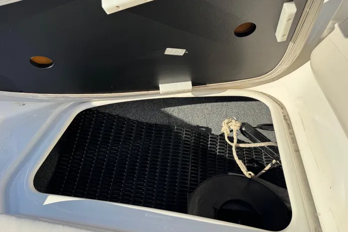 Also in the bow is storage under the seats. On the port side, the storage under the seat opens into a cavernous port console storage compartment for extra long items. Nine cup holders provide the finishing touch.